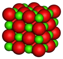While "magnesium oxide" normally refers to MgO, magnesium peroxide MgO2 is also known as a compound. According to evolutionary crystal structure prediction,[8] MgO2 is thermodynamically stable at pressures above 116 GPa (gigapascals), and a semiconducting suboxide Mg3O2 is thermodynamically stable above 500 GPa. Because of its stability, MgO is used as a model system for investigating vibrational properties of crystals.[9]