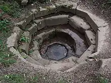 The ruins of a Roman temple possibly associated with a high-status Roman villa, which may have connections to Magnae, lie inside the Weir Garden by the River Wye. There is an octagonal cistern filled by a spring, and a ruined buttress by the river. These are the highest standing Roman ruins in Herefordshire.[8][9]