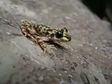 The Majorcan midwife toad (Alytes muletensis) (also Mallorcan midwife toad or ferreret in Balearic Catalan and Spanish) is a frog in the family Alytidae (formerly Discoglossidae). It is endemic to the Balearic Island of Majorca in the Mediterranean Sea. An example of Lazarus taxon, the species was first described from fossil remains in 1977, but living animals were discovered in 1979.