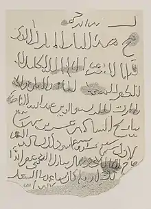 The ascension of the Muslim king Abdallah Barshambu and his transformation of the throne hall into a mosque has often been interpreted as the end of Christian Makuria. This is conclusion is erroneous, since Christianity evidently remained vital in Nubia.[147] While not much is known about the following decades, it seems that there were both Muslim and Christian kings on the Makurian throne. Both the traveller Ibn Battuta and the Egyptian historian Shihab al-Umari claim that the contemporary Makurian kings were Muslims belonging to the Banu Khanz, while the general population remained Christian. Al-Umari also points out that Makuria was still dependent on the Mamluk Sultan.[148] On the other hand, he also remarks that the Makurian throne was seized in turns by Muslims and Christians.[149] Indeed, an Ethiopian monk who travelled through Nubia in around 1330, Gadla Ewostatewos, states that the Nubian king, which he claims to have met in person, was Christian.[150] In the Book of Knowledge of All Kingdoms, which relies on an anonymous traveller from the mid-14th century, it is claimed that the "Kingdom of Dongola" was inhabited by Christians and that its royal banner was a cross on white background (see flag).[141] Epigraphical evidence reveals the names of three Makurian kings: Siti and Abdallah Kanz ad-Dawla, both ruling during the 1330s, and Paper, who is dated to the mid 14th century.[151] The attestations of Siti's reign, all Nubian in nature, show that he still exercised control/influence over a vast territory from Lower Nubia to Kordofan,[152] suggesting that his kingdom entered the second half of the 14th century centralized, powerful and Christian.[153]