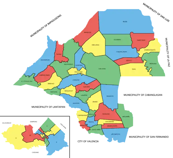 - "Division of Malaybalay City Map". 2012-10-20. Retrieved 2016-09-27.