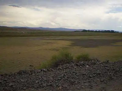 Mallín is a type of meadow and wetland found in southern Chile and Argentina. Mallines are distinguished from other wetlands in that the groundwater level reaches the surface at them, yet the mallín is still an area of net infiltration.[1] Soils in mallines are rich in organic matter.[1] In Argentina mallins have been important grazing lands for cattle, sheep and horses.[2] In eastern Patagonia the base of basaltic plateaus are associated with mallines.[3]