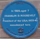 The 1887 Baedeker's includes Malvern in a London–Worcester–Hereford itinerary and described as "an inland health resort, famous for its bracing air and pleasant situation" and "a great educational centre", with five hotels that are "well spoken of", a commercial hotel, the Assembly Rooms and Gardens, and many excursions on foot, pony and by carriage.[56] Other descriptions of the diversions mention bands, quadrilles, cricket (residents vs visitors) and billiard rooms.[8]:197[23] The Duchess of Teck stayed, with her daughter Mary (later queen consort of George V), in Malvern in the Autumn of 1891, joined by Lady Eva Greville.[57] and the Duke of Teck.[58] The Duchess was "perfectly enchanted with Malvern and its surroundings" and, with the Duke, visited Malvern College.[59] The Duchess returned to open the new waterworks at Camp Hill in 1895.[23] In 1897, the painter Edward Burne-Jones came to Malvern for the "bracing air", on the recommendation of his doctor, but stayed in his hotel for a week.[60] The 7-year-old Franklin D. Roosevelt visited in 1889, during a trip to Europe with his parents.[61]