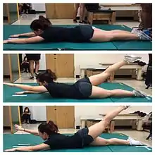 Scoliosis specific exercised have been found to improve treatment outcomes when utilized in addition to bracing and other standards of care.[18] Scoliosis specific exercises include methods such as Schroth[19] which specifically aim to correct aesthetic differences and strengthened muscles and connective tissue that may have atrophied as a result of scoliosis and asymmetric posture. Schroth exercises and other scoliosis specific exercises should be utilized in conjunction with bracing and other standards of care,[20] and be performed under the guidance of a trained professional to ensure the exercises are effective and target the individual's curve pattern so that the correct muscles are strengthened. Strengthening spinal muscles is a crucial preventive measure. This is because the muscles in the back are essential when it comes to supporting the spinal column and maintaining the spine's proper shape. Exercises that will help improve the strength of the muscles in the back include rows and leg and arm extensions.[21] Elastic resistance exercise may also be able to sustain the progression of spinal curvature.[22] This type of exercise is able to sustain progression by equalizing the strength of the torso muscles found on each side of the body.