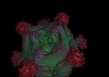 The Mandelbulb is a three-dimensional fractal, constructed by Daniel White and Paul Nylander using spherical coordinates in 2009.[1]