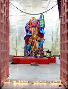 It is also believed that this place was once the maternal residence of Mandodari, the wife of Ravana. In old city areas, people worship the idol of Ravana and avoid participating in the 'Ravana Dahan' (burning the idol of Ravana as a symbol of victory of good over evil) ritual on Vijayadashami (Dashahara) as they regard Ravana their son-in-law. A 35-feet ten headed sitting idol of Ravana can be seen in the Khanpura area of the city.