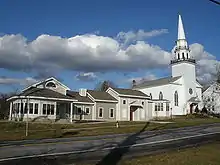 At Pleasant and North Street, turn right onto North Street: First Baptist Church, neo-Federal style brick church, built in 1929, at the corner of Pleasant Street