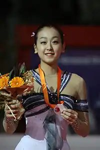 Mao Asada (浅田 真央, Asada Mao, born 25 September 1990) is a Japanese former competitive figure skater. She is the 2010 Olympic silver medalist, a three-time World champion (2008, 2010, 2014), a three-time Four Continents champion (2008, 2010, 2013), and a four-time Grand Prix Final champion (2005–06, 2008–09, 2012–13, 2013–14). She is the first female figure skater who has landed three triple Axel jumps in one competition, which she achieved at the 2010 Winter Olympics. At the 2014 Winter Olympics, she became the first woman to successfully land eight triple jumps in the free skate (the maximum possible under the Zayak Rule), although two jumps were called as under-rotated.[14]