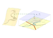 Computer based geographical information systems facilitate the scaling, rotation, and translation of an entire map to fit over another.[3] Georeferencing establishes a congruent relationship between maps, and allows each map to be transformed and automatically re-projected as an overlay. This method is useful for the regression of maps that differ in format, for example, raster images of early maps and vector representations of modern maps.