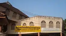 In 1999, then Chief Minister of Kerala E. K. Nayanar inaugurated the Mahakavi Moyinkutty Vaidyar Smarakam at the poet's birthplace in Kondotty as a cultural centre to attract research into Mappilappattu, and its studies and interpretations in Malayalam. The foundation stone was laid by, then Chief Minister, K. Karunakaran on 24 December 1994.[64] The centre runs certificate courses in ‘Mappilappattu’ and ‘Mappila kali’. It also has attached to it a folklore study centre, a historical museum, and a reference library containing rare manuscripts in Arabi-Malayalam and other handwritten manuscripts. Each year it conducts the Vaidyar Mahotsavam, a two or three-day festival that includes cultural and literary programmes related to all Mappila art forms. The Vaidyar Memorial Lecture is also delivered during the festival.[65][66] In 2005, a two-volume compilation of his works was released as a book Mahakavi Moyinkutty Vaidyar, Sampoorna Krithikal by the Mahakavi Moyinkutty Vaidyar Smaraka Samithi under the aegis of the Culture Department, Government of Kerala.[28] It also published a collection of essays on Moyinkutty Vaidyar titled Mahakavi Moyinkutty Vaidyar Padanangal. On 12 June 2008, M. A. Baby, Minister of Education and Culture, Government of Kerala, inaugurated the Mahakavi Moyinkutty Vaidyar Memorial Center for Studies and Research on Folk and Mappila Arts (SCARF) at the Vaidyar Smarakam complex. A regional centre for study of Mappila folk arts was also set up at Mogral in Kasargode district in 2009.[67]