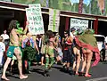 On 1 May 1993 [2] people gathered by the local creek for the rally. They also had a good time with their colourful bright clothing coloured with dye of food colouring. Bob, dressed as a nun led the people while blowing on a tuba. There was only a small group at the start (along with a giant joint made of a large sheet and other assorted household goods).