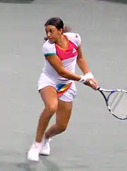 At the Tier I event in Zurich Bartoli reached the quarter-finals, where she retired due to injury against Tatiana Golovin.[23] Despite her injury, Bartoli played at the Generali Ladies Linz in Austria, and reached the semi-finals, where she was defeated by Patty Schnyder. This ended her hopes of reaching the WTA Tour Championships. However, after Serena Williams withdrew,[24] Bartoli entered the event and played in the yellow group, where she lost to Justine Henin without winning a game, but defeated Jelena Janković after the Serbian retired. Her final record for the year was 47–31, with 19–16 on hard courts, 14–7 on clay, 12–3 on grass, and 2–5 on carpet. Her record against top-10 players was 4–8. Despite not having earned a single title all year, she ended the year at world No. 10.