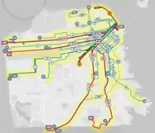 A 2019 map showing all Muni routes than run on Market Street