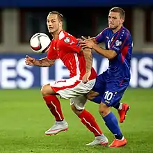 Arnautović started all but one of Austria's qualification matches for the 2018 FIFA World Cup, only missing the game against the Republic of Ireland through suspension.[71] He scored four goals in the 10 games, but Austria's fourth-place finish would not be enough for qualification.[72][73]