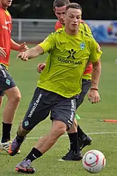 He made 16 appearances in 2007–08 as Twente finished in fourth position and qualified for the UEFA Champions League. In the 2008–09 season Arnautović scored 14 goals in 41 matches as Twente finished 2nd in the Eredivisie and reached the knock out phase of the UEFA Cup.[8] In March 2009 after a league match against Willem II, one of Twente opponents, Ibrahim Kargbo, accused Arnautović of racially abusing him.[9] After an investigation by the Dutch Football Association they found no evidence against him and the case was dismissed.[10]