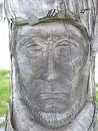 ![]() A tree trunk carved in the likeness of Marlboro Packard. This tree is found on the grounds of his home in Searsport, Maine. | |