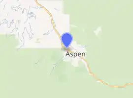 Aspen eventually became the center of settlement in the region due to its location at the confluence of Castle Creek and the Roaring Fork. It was not closest to the Divide or the richest deposits, but it had an ample supply of level ground and forests including the trees that gave it its name, which were readily harvested to build the first log cabins.[11]