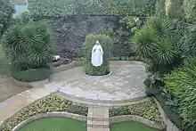 According to the account, on September 12, 1948, Castillo was in the convent garden and noticed a vine shaking without any wind blowing. She then heard a woman's voice that instructed her to visit the garden for 15 consecutive days.[4] The next day, September 13, Teresita came to the spot at 5:00 p.m., knelt down and intended to say the Hail Mary. In the middle of the prayer, wind came, the garden vine moved, and a beautiful Lady appeared. Castillo described the Lady as having her hands clasped in prayer and holding a golden Rosary in her right hand. The Lady asked her to pray for priests and nuns.