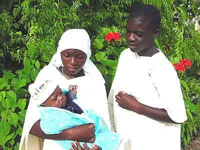 In Islam, Mary is known as Maryam (Arabic: مريم, romanized: Maryām), mother of Isa (Arabic: عيسى بن مريم, romanized: ʿĪsā ibn Maryām, lit. 'Jesus, son of Mary'). She is often referred to by the honorific title sayyidatuna, meaning "our lady"; this title is in parallel to sayyiduna ("our lord"), used for the prophets.[39] A related term of endearment is Siddiqah,[40] meaning "she who confirms the truth" and "she who believes sincerely completely". Another title for Mary is Qānitah, which signifies both constant submission to God and absorption in prayer and invocation in Islam.[41] She is also called "Tahira", meaning "one who has been purified" and representing her status as one of two humans in creation (and the only woman) to not be touched by Satan at any point.[42]