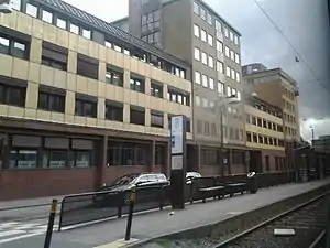 Masthuggstorget is a tram stop of the Gothenburg tram network, located on Första Långgatan, and is one of the other tram stops that are on a grassway. It's the last before it joins routes 1 and 6, at Järntorget. At the next stop, Hagakyrkan, because line 3 is part of the lines that go to Brunnsparken via Valand and Kungsportsplatsen, there is junction. At Grönsakstorget, line 2 joins and forms lines that go to Brunnsparken via Domkyrkan (station currently closed for renovations).