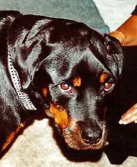 Masticatory muscle myositis (MMM) is an inflammatory disease in dogs affecting the muscles of mastication (chewing). It is also known as atrophic myositis or eosinophilic myositis. MMM is the most common inflammatory myopathy in dogs.[1] The disease mainly affects large breed dogs.[2] German Shepherd Dogs [3] and Cavalier King Charles Spaniels may be predisposed.[4] There is a similar disease of the eye muscles found in Golden Retrievers. Symptoms of acute MMM include swelling of the jaw muscles, drooling, and pain on opening the mouth. Ophthalmic signs may include third eyelid protrusion, red eyes, and exophthalmos (protruding eyeballs).[5] In chronic MMM there is atrophy of the jaw muscles, and scarring of the masticatory muscles due to fibrosis may result in inability to open the mouth (trismus). The affected muscles include the temporalis, masseter, and pterygoid muscles. The disease is usually bilateral.