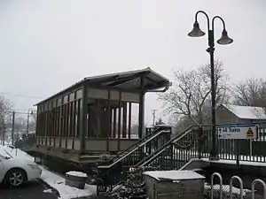 The station was originally named Mattetuck,[2] and opened on July 29, 1844.[3] It was rebuilt in 1878 and remodeled in 1944. The station house was closed in 1959 and razed in July 1967, but the station still remained active. When Cutchogue station was closed in June 1962, Mattituck station became one of two replacements, the other being the former Peconic station, which itself closed sometime in 1970. The station contained a total of three "produce storage" facilities, which still exists today, one of which is a real estate office.[4] A new station with high-level platforms was built between 2000 and 2001, which many stations on the LIRR were getting at the time.