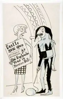 Lancaster had been contributing pocket cartoons to The Daily Express since 1939, but it was not until after the war that he developed a repertory company of characters in whose mouths he put his social and political jokes. Maudie quickly became his star character and principal mouthpiece. She began as what he called "a slightly dotty class symbol", but developed into "a voice of straightforward comment which might be my own".[6] Her comments on the fads and peculiarities of the day caught the public imagination;[6] the art historian Bevis Hillier called her "an iconic figure to rank with Low's Colonel Blimp and Giles's Grandma".[7]