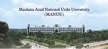 Maulana Azad National Urdu University is a Central University located in the city of Hyderabad in the Indian state of Telangana. It was named after Maulana Abul Kalam Azad, India's first Minister of Education, a freedom fighter in India's struggle for independence, and a scholar of Islam and Urdu literature.[2] It was the only Urdu university in India until the second university was built in the city of Kurnool, Andhra Pradesh in 2015.[3]