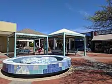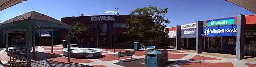Southlands Centre is a commercial and retail centre located in Mawson. It contains a shopping centre, the Southlands Tennis Club, and a branch of the Canberra Raiders Leagues Club trading as[3] The Mawson Club.[4] Nearby are the Mawson district playing fields, Woden Golf Driving Range and Dyraaba Court Retirement Village. The Mandir Hindu Temple is located in the suburb.[5] Other religious organisations include the Salvation Army Woden Valley Corps, a Seventh-day Adventist church, a New Apostolic Church,[6] and the Australian headquarters for Gideons International.