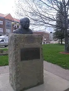 A bust of him by Oscar Nemon stands in the park in the town square of Newcastle, New Brunswick, not far from where he sold newspapers as a young boy.[33] His ashes are in the plinth of the bust.[12]