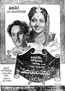 Mayalamari (transl. Wizard) is a 1951 Indian Telugu-language swashbuckling fantasy film, produced by A.N.R.Gopala Krishnan under the Aswini Pictures banner[2] and directed by P. Sridhar.[3] It stars Akkineni Nageswara Rao, Anjali Devi and music composed by P. Adinarayana Rao.[4] The film was simultaneously released as the Tamil movie Mayakkari (1951).