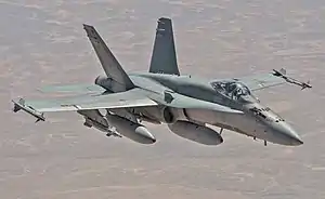 | A Royal Canadian Air Force CF-18A flies on a mission over Iraq during Operation Impact in 2015 | |