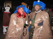 MREs have also been distributed to civilians during natural disasters.[2] The National Guard has provided MREs to the public during national disasters, such as Hurricanes Katrina, Ike, and Sandy; and the 2011 Super Outbreak. The large number of civilians exposed to MREs prompted several jokes during the recent New Orleans Mardi Gras, with revellers donning clothing made of MRE packets with phrases such as "MRE Antoinette" and "Man Ready to Eat".