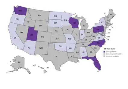 2015 was the primary growth year, with a $3 million grant from the Pershing Square Foundation allowing immediate expansion into 5 other states: Washington, Utah, Pennsylvania, North Carolina, and Florida, with roughly 370 counties' data gathered.[2][5] The initial alpha prototype of the visualization software was created and door to door verification of key otherwise-unobtainable data was begun. The "20 states by 2020" campaign was commenced in 2016, primarily funded by Google ($1.5 million) and Chan Zuckerberg Initiative ($6.5 million),[2] and the goal of 20 states was reached in December 2020.