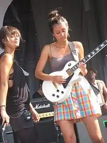 Dia Leif Frampton[32] (born October 2, 1987) was the lead singer of the band. She attended Dixie High School in St. George, Utah and Shadow Ridge High School in Las Vegas, Nevada; she graduated early by also homeschooling her senior year at the same time attending public school for her junior year in 2005 then moved to Salt Lake City with her sister to further their music career. She cites as influences Modest Mouse, Tom Petty and the Heartbreakers, Joni Mitchell, The Avett Brothers, Rocky Votolato, Ben Folds, Etta James, Death Cab for Cutie, The Cranberries, and Cursive.[33] During live performances, Dia plays percussion instruments, such as the cowbell and tambourine, and occasionally a Casio Privia keyboard. She almost always performs without shoes on. She also does not like to eat anything within two hours of performing. Dia often recorded a "song diary," an impromptu recorded song, on her MySpace page. She explained, "It was something very raw, and to be honest, something that I was slightly embarrassed to put up because of the quality but I did anyways, for any of our listeners who would care to hear something not hot off the production belt, but something more organic and 'home made.' It made me feel better to share my feelings with people who could connect, and I think that is what happened with many."[34]