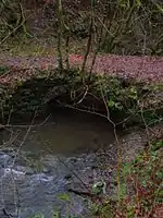 The old OS maps show that a dam existed above the falls and a leat or lade carried water from the millpond to the waterwheel on the Kersland Mill, located on the gable end facing the falls. The lower lint and saw mills were supplied with a head of water from a millpond created by a dam at the lower end of the glen and this explains the degree of erosion of the southern bank of the Powgree Burn below Kersland Mill Bridge.