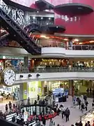 Melbourne Central has a broad range of food outlets in two separate food courts. There is a food court on the lower ground level, on the same level as the entrance to the train station, where there are outlets such as McDonald's, Subway and KFC. Another food court is located on the Food On 2 level, accessible directly from the Corner of LaTrobe and Swantston Sts. by escalator. Food On 2 was closed in 2011 for redevelopment whilst adjacent to this, a brand new, larger food court, called the Dining Hall, opened in the first stage of its $30 million redevelopment.[14]