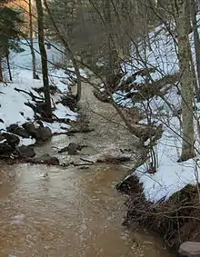 It can also destabilize glacial lakes leading to sudden floods, and destabilize snowpack causing avalanches.[4] Dammed glacial meltwater from a moraine-dammed lake that is released suddenly can result in the floods, such as those that created the granite chasms in Purgatory Chasm State Reservation.