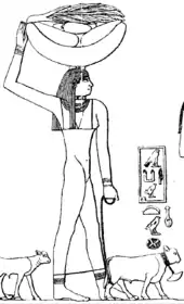 Menkauhor's sun temple was called Akhet-Ra, which is variously translated as "The Horizon of Ra" or "The Place where Ra Issues Forth".[64][68] The temple has yet to be located and could be lying under the sands of Saqqara or Abusir.[69] Its existence is known thanks to inscriptions found in the tombs of Fifth and Sixth Dynasties officials who served as priests of Ra in the temple.[70][71] These include Hemu,[72] buried in Giza, and Neferiretptah[72] and Raemankh,[73] who were both buried in Saqqara-north.[63] In addition to his service in the Akhet-Ra, Neferiretptah was a priest in Menkauhor's pyramid and held the office of "royal ornament", making him responsible for the precious items in the palace of the king.[74]