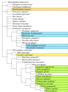 Most female mammals have an estrous cycle, yet only ten primate species, four bats species, the elephant shrew, and one known species of spiny mouse have a menstrual cycle.[18][19] As these groups are not closely related, it is likely that four distinct evolutionary events have caused menstruation to arise.[20]