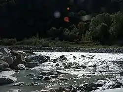 The Mera (also called Lombard: Maira in Switzerland) is a river in Switzerland and Italy. Its source is near the Piz Mungiroi, in the Grisons, Switzerland. First, it flows east in the direction to Maloja Pass, then turns west through the Val Bregaglia (German: Bergell) and crosses the border to Italy in Castasegna (Dogana). It is joined by the Acquafraggia close to Piuro, and then turns south at Chiavenna, just before it receives the river Liro from the right at Prata Camportaccio. The Mera ends in Lake Como, near Sorico in the Province of Como.