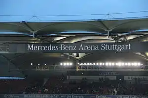 Before 1993 it was called Neckarstadion [ˈnɛkaʁˌʃtaːdi̯ɔn], named after the nearby river Neckar and between 1993 and July 2008 it was called Gottlieb-Daimler-Stadion [ˌɡɔtliːpˈdaɪmlɐˌʃtaːdi̯ɔn]. From the 2008–09 season, the stadium was renamed the Mercedes-Benz Arena, starting with a pre-season friendly against Arsenal on 30 July 2008.[5]
