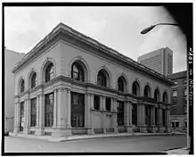 The Merchants' National Bank Building (1895), Baltimore was a historic bank building at 301 Water Street, at the corner of South Street, in Baltimore, Maryland. It was a 7-story, Renaissance Revival style building designed by the Baltimore-based architectural firm of Baldwin & Pennington, and constructed in 1893-1895. Johns Hopkins, a Baltimore businessman, abolitionist, and philanthropist, had been president of the bank from 1853 until his death in 1873.[2][3]