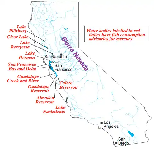 Mercury contamination in California waterways posed a threat to both the environment and human health. The roots of the problem are in gold mining; since the California Gold Rush, mercury has been used for gold extraction. Historically, 10-30% of mercury was lost in the mining process, resulting in widespread contamination of river and lake sediments. Many water bodies in the state of California bear fish consumption advisories due to mercury content.