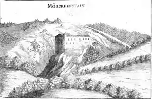 ![]() Engraving of Merkenstein in 1670 by Georg Matthäus Vischer | |