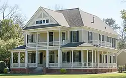 It is a two-story frame house with elements of Classical Revival and Queen Anne architecture. It was built in c.1840 with symmetrical design, square paneled portico columns and other elements of Classical Revival style. It was renovated in 1895 into its two-story form, with a wrap-around porch. It has a c.1930 garage that is a second contributing building in the listing.[2]