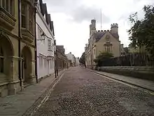 Merton Street is a historic and picturesque cobbled street in central Oxford, England.[1][2] It joins the High Street at its northeastern end, between the Ruskin School of Drawing and Fine Art (together with the Examination Schools) and the Eastgate Hotel at the historic east gate of the city. It then runs east–west, parallel and to the south of the High Street for most of its length.