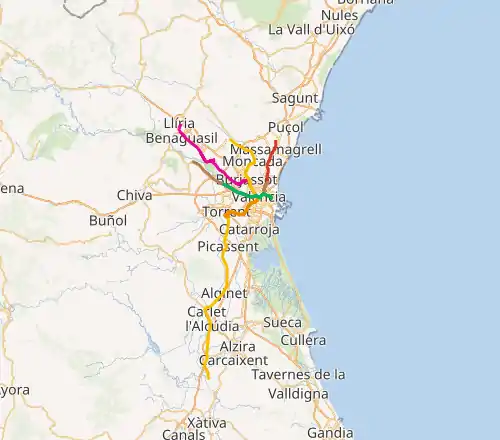 | Llíria – Torrent Avinguda | 1988† | Underground + Regional train | 39.445 km (24.510 mi) |