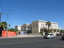 The Mexican side was named Mexicali (a portmanteau composed of "Mexico" and "California") by Coronel Agustín Sanguinéz. Initially the area belonged to the municipality of Ensenada.[4] The town of Mexicali was officially created on 14 March 1903 when Manuel Vizcarra was named as the town's first authority and Assistant Judge (juez auxiliar).[2] On January 29, 1911, Mexicali was briefly "liberated" by the Liberal Party of Mexico during the Mexican Revolution. Mayor Baltazar Aviléz declared the municipality of Mexicali on November 4, 1914 and called for elections to creation of the first ayuntamiento or municipality, which was then headed by Francisco L. Montejano.[4]