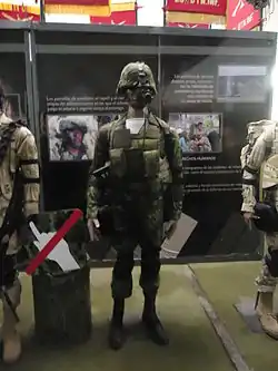 During the 18th century the Spanish colonial forces in the greater Mexico region consisted of regular "Peninsular" regiments sent from Spain itself, augmented by locally recruited provincial and urban militia units of infantry, cavalry and artillery. A few regular infantry and dragoon regiments (e.g. the Regimiento de Mexico) were recruited within Mexico and permanently stationed there.[5] Mounted units of soldados de cuera (so called from the leather protective clothing that they wore)[6] patrolled frontier and desert regions.[7]